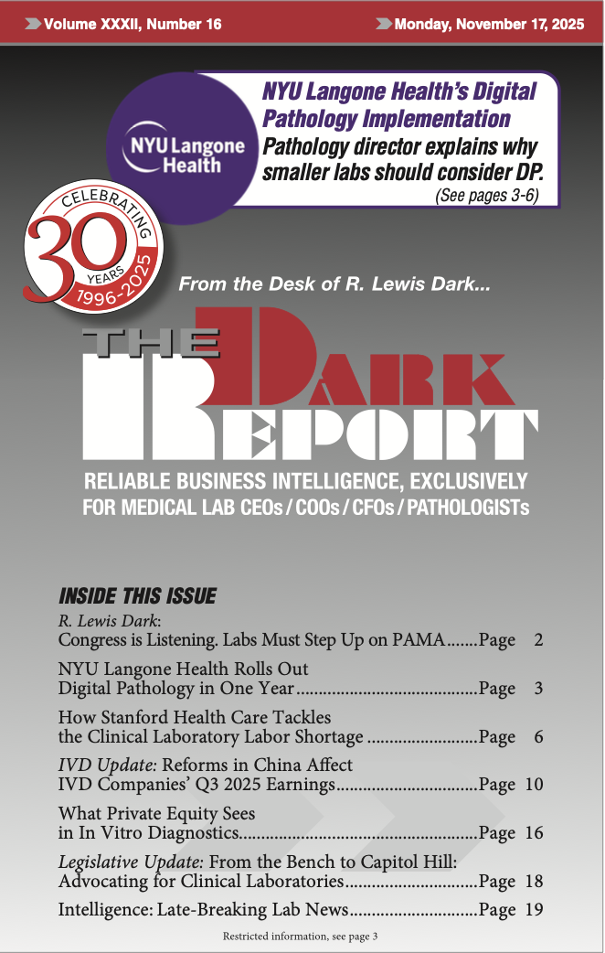 Lab leaders rely on THE DARK REPORT for actionable intelligence on important developments in the business of laboratory testing. Maximize the money you make-and the money you keep! Best of all, it is released every three weeks!